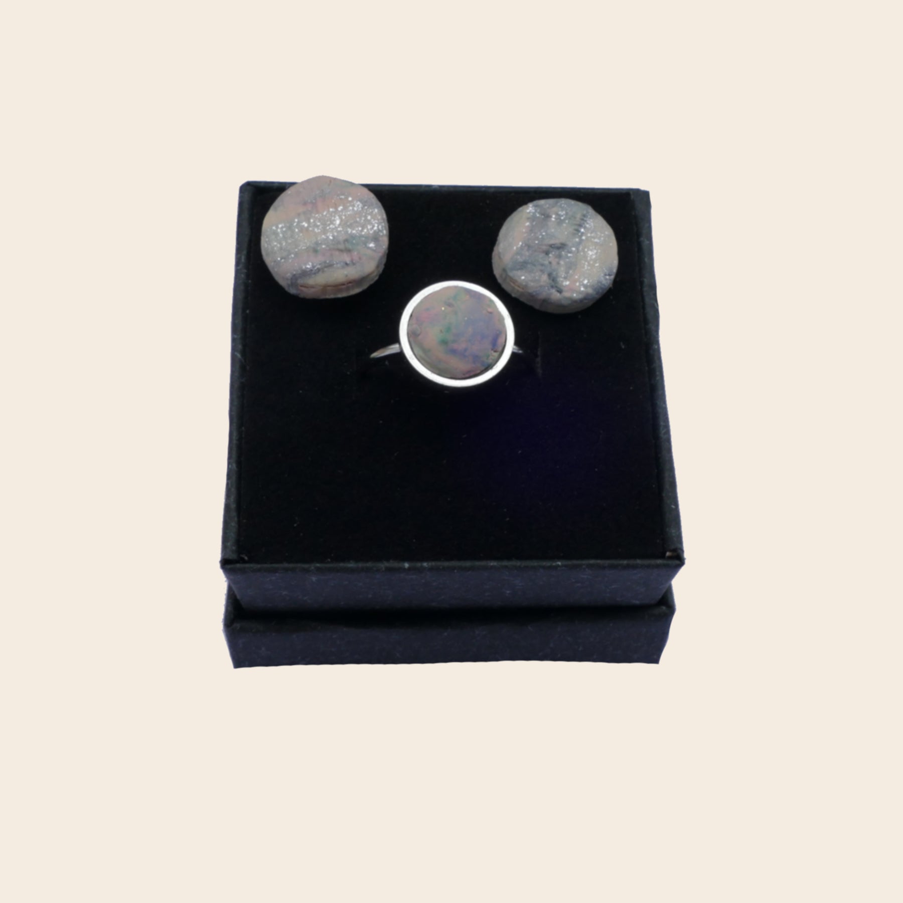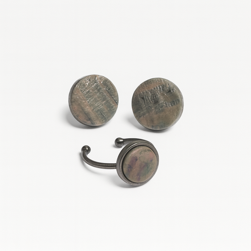 Este conjunto artesanal de pendientes y anillo de la colección Aeracura te invita a honrar tu cuerpo como un templo vivo.