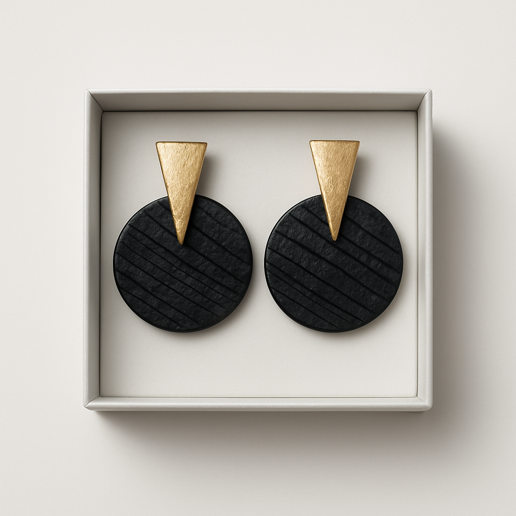 Combinan el dorado que evoca magia con un círculo negro también disponible en crema de textura rugosa, recordando el fluir natural de cada etapa.
