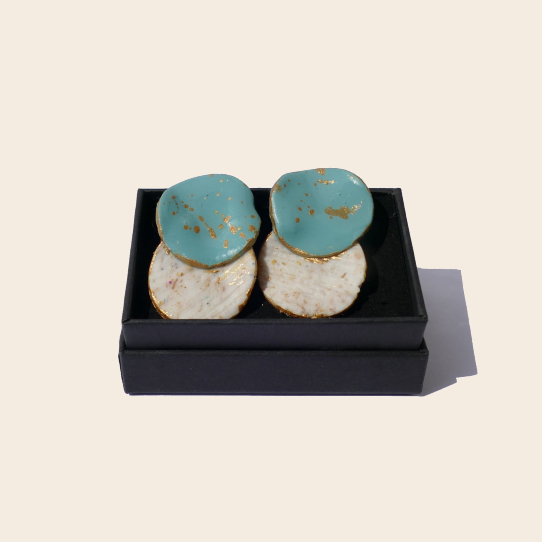 El turquesa habla de claridad. El crema, de quietud. Y las partículas doradas, de esos pequeños destellos que aparecen cuando decides confiar en tu propio ritmo.