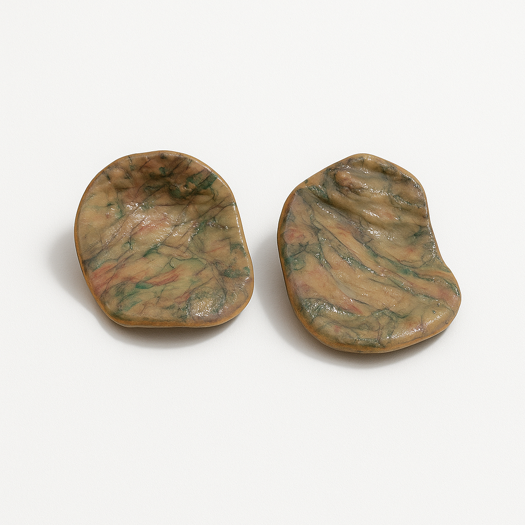 Descubre Sarasvati, pendientes hechos a mano donde los tonos turquesa, púrpura y gris se mezclan como pinceladas de un lienzo vivo, salpicados de destellos plateados que capturan la luz y la mirada.